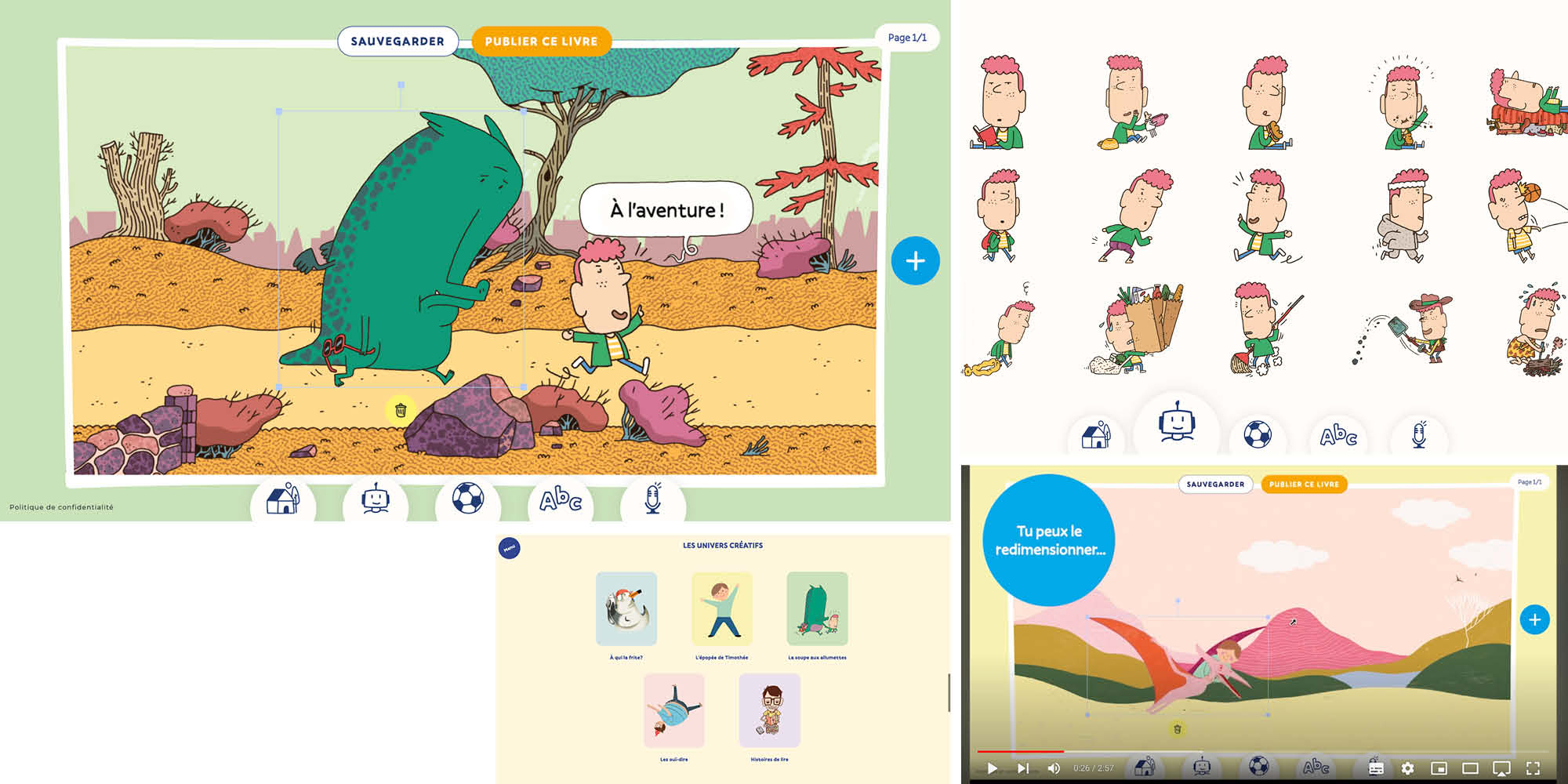 A web-based platform for children to create their own stories using visual elements — characters, sets, accessories — taken from several albums published by Fonfon.